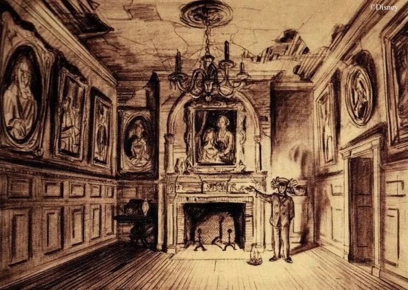 The Disneyland construction crew planned to completely restore the manor to its original Dixieland splendor but playful spooks constantly undermined their efforts by breaking windows, hiding tools, trashing furniture, and smashing walls. It got to a point were one worker was accidentally walled up inside the house. The work on the house was later be abandoned, with the mansion in a state of limbo between finished and unfinished.