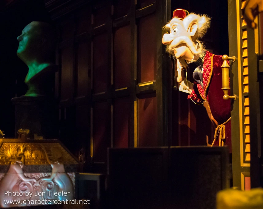 At the end of the attraction, when the music box is closed, Lord Mystic pops his head out, again, finally finding Albert. He asks if he touched the box, and he shakes his head. Mystic ponders if the legends are true, before thanking the guests for coming and wishing them off.